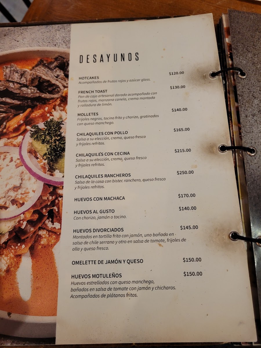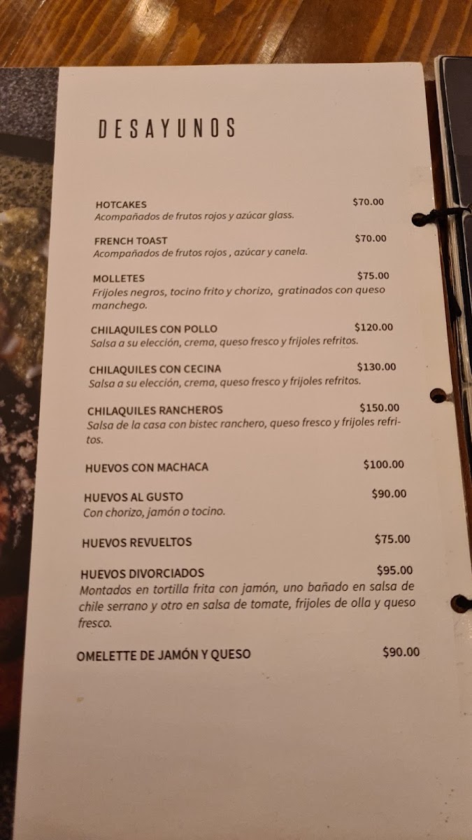 - Desayunos: Start your day right with delicious Molletes topped with creamy avocado and crispy bacon, or the classic Huevos Divorciados, served with zesty sauces.